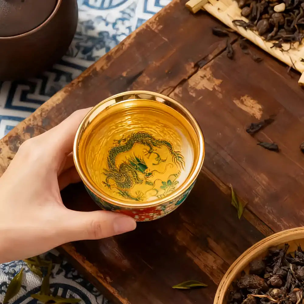 Enamel-Gilded Dragon & Phoenix Pair Teacups - Handcrafted Porcelain Tea Set, Chinese Antique-Style Gift